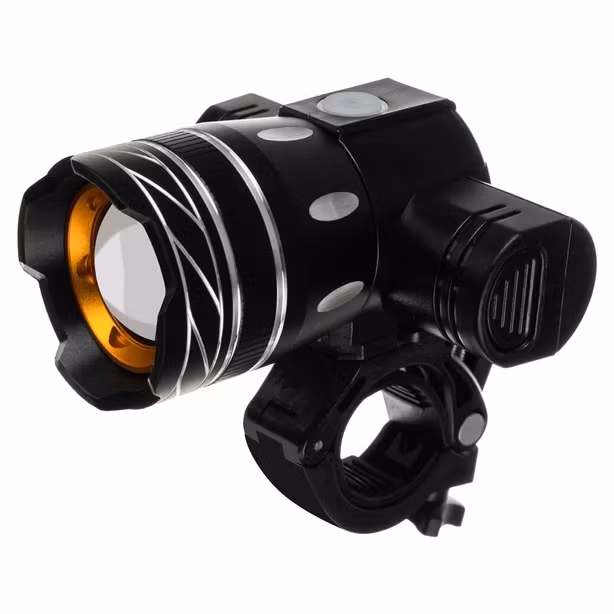Etuvalo on kompaktisti muotoiltu, mutta siinä on erittäin tehokas ja energiatehokas Cree LED XM-L T6 -lamppu, joka tarjoaa hyvän näkökentän myös pimeimmissä paikoissa. Valossa on kolme valotilaa, joita voit helposti vaihdella (kaukovalot, lähivalot ja vilkkuvat valot). Kiinnike on käännettävissä 360°, ja vaossa on zoomaustoiminto, joten voit helposti suunnata valon juuri sinne, minne haluat.