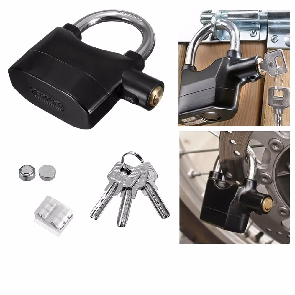 Käytännöllinen ja turvallinen riippulukko, joka ei ainoastaan lukitse esineitä vaan myös antaa voimakkaan hälytyssignaalin (110 db), kun joku yrittää murtaa lukon. Riippulukko on valmistettu vankasta metallista ja sopii käytettäväksi porteissa, autotallin ovissa, varastoissa, polkupyörissä, mopoissa jne. Riippulukko on vedenpitävä ja sitä voidaan käyttää ulkona. Voidaan käyttää sekä tavallisena riippulukkona että hälytystoiminnolla varustettuna riippulukkona.