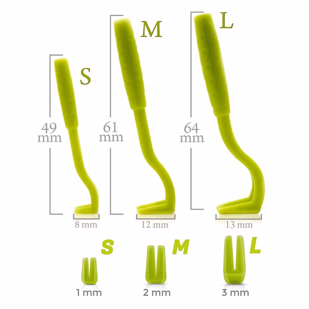 Pakkaus sisältää yhden pienen (5 cm), yhden keskikokoisen (8 cm) ja yhden suuren (11 cm) punkinpoimijan, joten voit poimia sekä suuria että pieniä punkkeja.