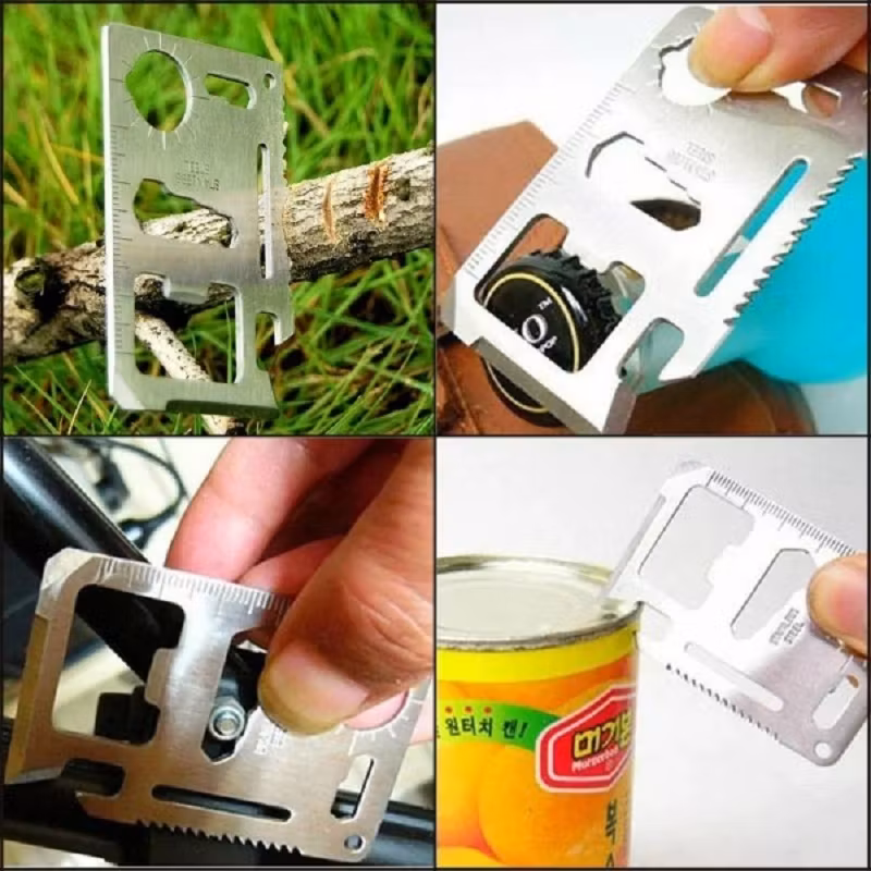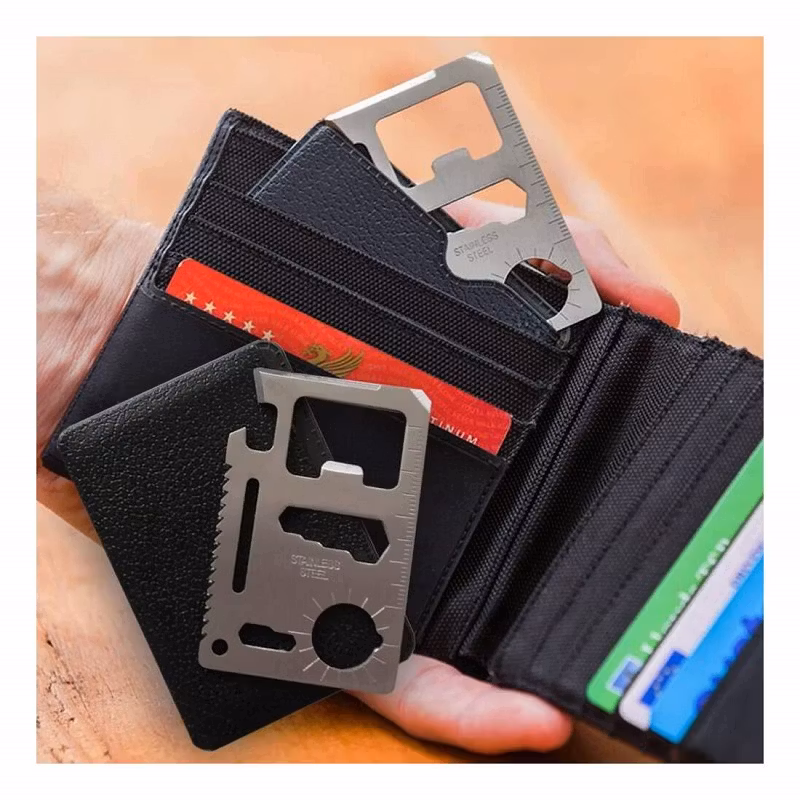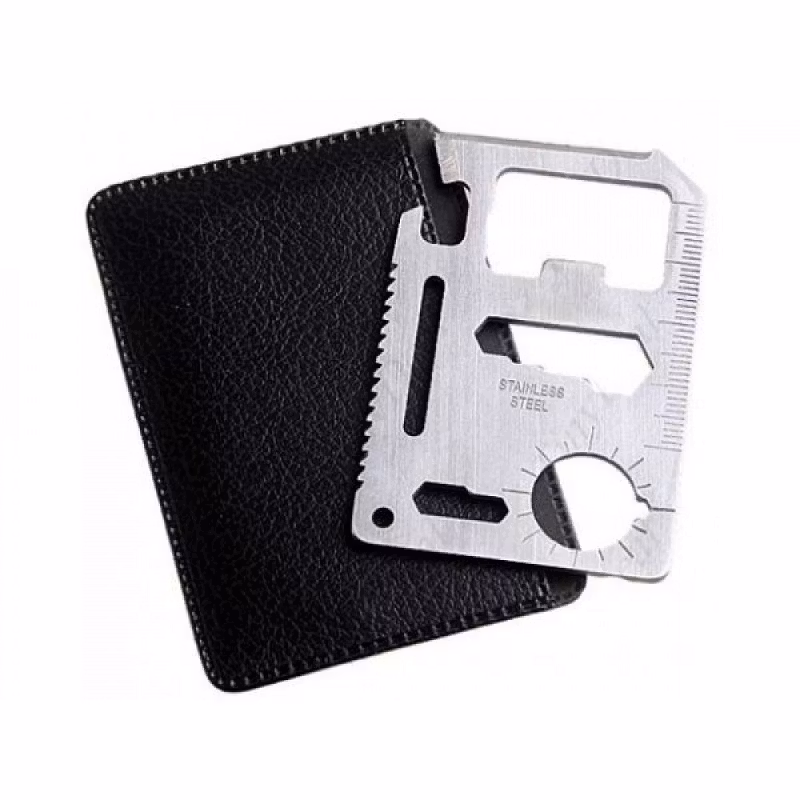 Käytännöllinen monitoimityökalu kätevässä luottokorttimuodossa, jossa on 11 korvaamatonta toimintoa, jotka voivat olla hyväksi avuksi odottamattomissa tilanteissa. Monitoimityökalu on tavallisen luottokortin kokoinen ja kevyt. Se mahtuu helposti lompakkoon tai taskuun, joten se on aina käden ulottuvilla. Ihanteellinen mukan otetavaksi lomalle, retkeilyyn, vaellukselle tai kalastukseen.