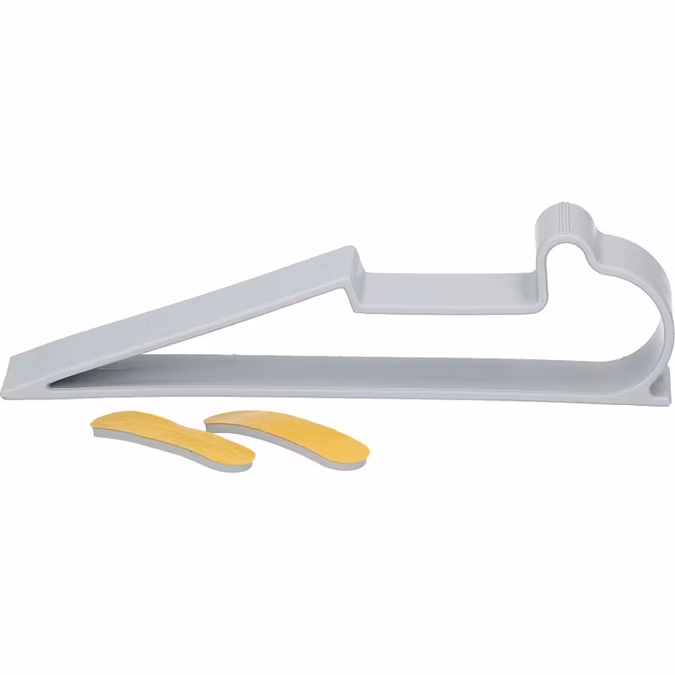 Valkoinen, muovinen ovistoppari, joka pitää oven paikallaan ja suojaa puristusvammoilta. Tämä älykäs lapsiturvallinen ovistoppari estää oven paiskautumisen kiinni ja henkilön jäämisen puristukseen. Oven pidike soveltuu parhaiten kynnyksellisiin oviin. Älykkään suunnittelun ansiosta voit helposti päättää, milloin ovi voi olla auki, mutta lukitus- asennossa.